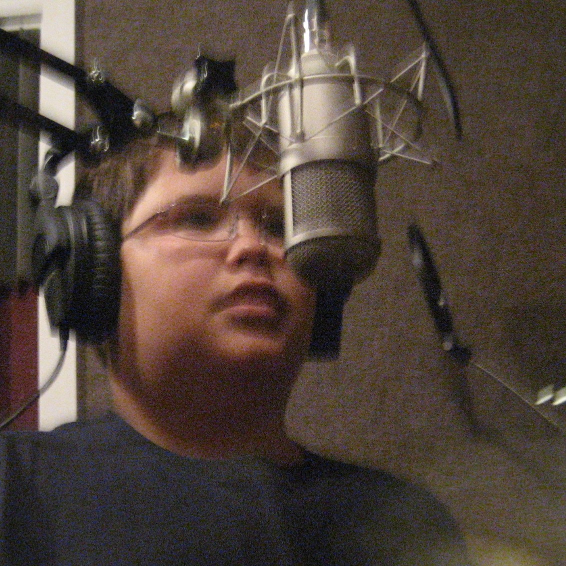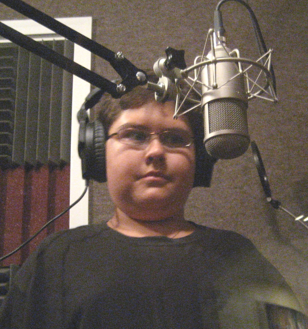 Justin Mirabal singing on "Santa Claus Got Stuck In My Chimney", Tony's Treasures Studio, Cadiz, OH |