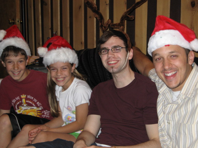 David & Evie Rupp, Sean Ferguson, Nikolas Delaveris getting into the Christmas Spirit in June |