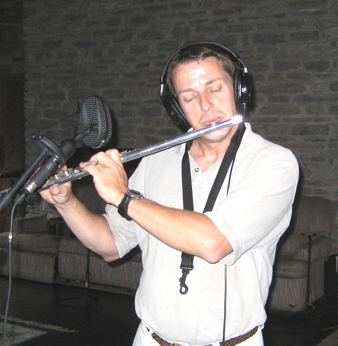 Michael Cox tracking his flute solo on "Some Children See Him" |