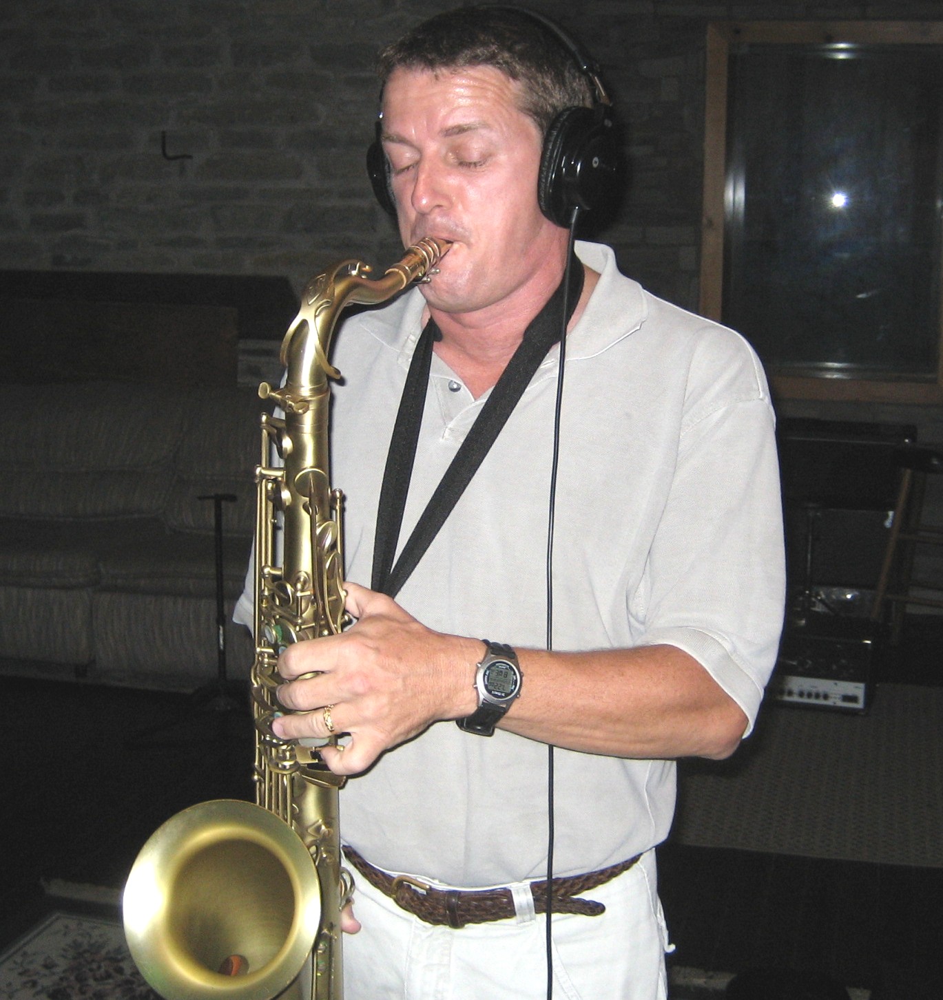 Michael Cox tracking his sax solo on "Merry Christmas Baby" |