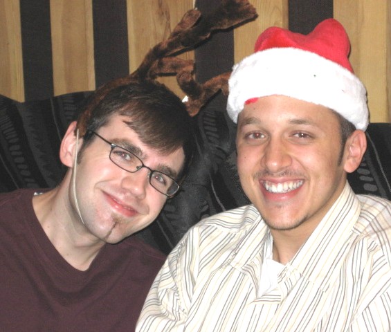 Sean Ferguson and Nikolas Delaveris in their Christmas ham photo |